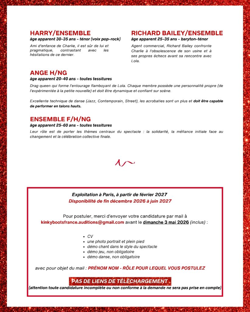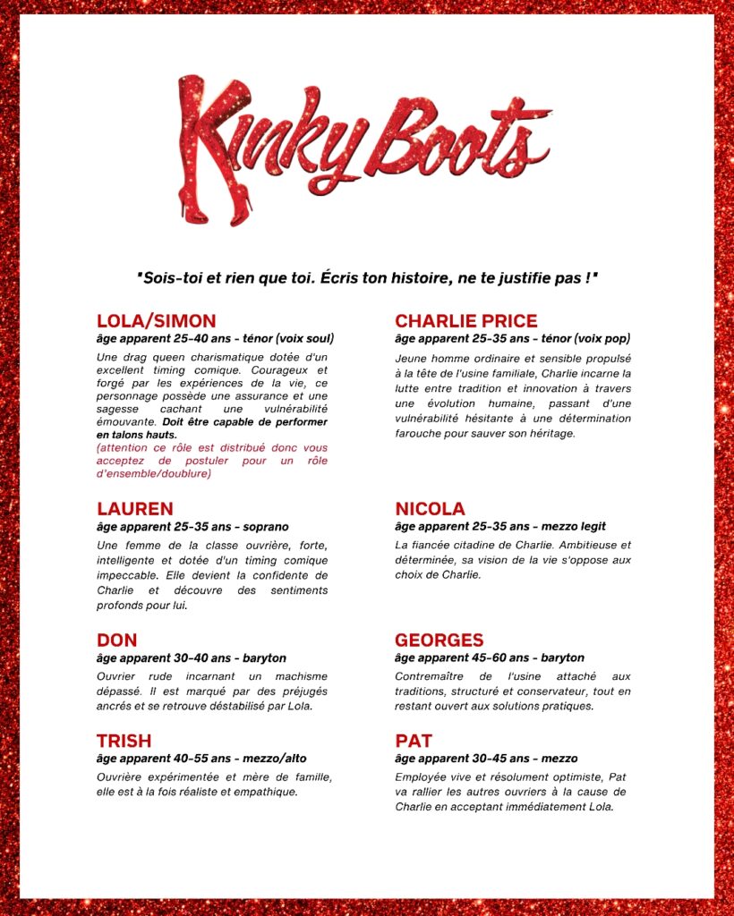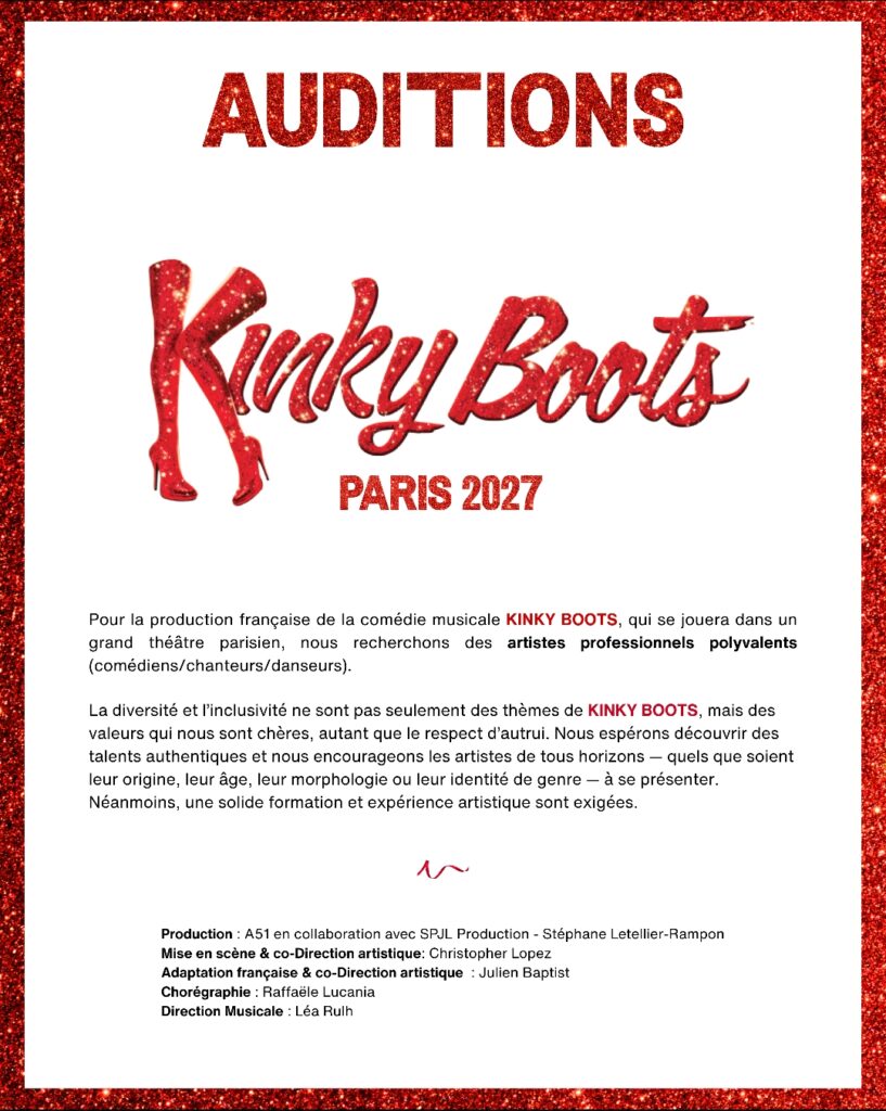Kinky Boots arrive à Paris en février 2027 ! Un casting est organisé.