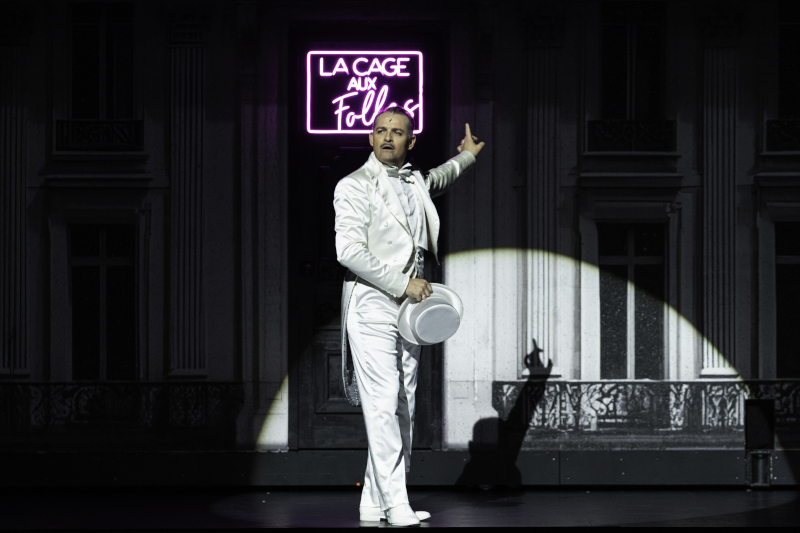Notre avis (répétition générale du 4 décembre 2025) : Un peu comme pour Les Misérables présentés triomphalement au Châtelet l'an dernier, La Cage aux folles revient enfin en France où elle prend sa source, après une métamorphose musicale à Broadway qui l'a joyeusement propulsée sur les scènes du globe – sauf à Paris où le retour fut raté. De la pièce à succès de Jean Poiret créée en 1973 avec Michel Serrault, dont il ne subsiste que quelques extraits vidéo, le public français garde généralement en mémoire son adaptation pour le cinéma en 1978 (et la célèbre scène de la biscotte). En l'adaptant en comédie musicale en 1983, Jerry Herman et Harvey Fierstein ajoutent à la pièce de boulevard française la grandeur du cabaret (on découvre enfin Zaza en meneuse de revue) et une dimension plus politique. Le livret, dont l'une des faiblesses réside peut-être en une certaine langueur d'exposition du cadre au détriment d'une intrigue – par ailleurs assez mince – qui tarde à s'installer, se distingue néanmoins par son audace à montrer un exemple d'homoparentalité et, plus généralement, à revendiquer la liberté sexuelle et le droit d'être soi. Auréolée de six Tony Awards en 1984 – dont ceux de la meilleure comédie musicale, de la meilleure partition et du meilleur livret –, la comédie musicale conquiert les théâtres du monde entier, mais la France lui résiste. En 1999, elle est enfin présentée à Mogador dans une traduction du regretté Alain Marcel avec, entre autres, Patrick Rocca, Bernard Alane, et Arnaud Denissel... mais, pour tout un tas de raisons, c'est un échec (voir ici un reportage réalisé à l'époque – qui permet de se rappeler qu'en ce temps-là, on parlait de « Cagettes »). Pourtant, comme pour Les Misérables, quelques décennies plus tard, la malédiction semble enfin levée grâce à une nouvelle production du Châtelet.