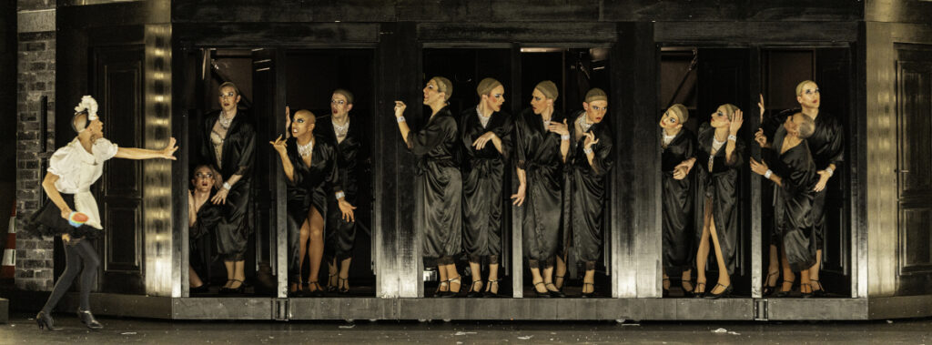 Loin d’être enfermée dans les clichés véhiculés par le théâtre ou par le cinéma, la nouvelle production en français de La Cage aux folles, traduite et mise en scène par Olivier Py, réinscrit l’œuvre dans son contexte : le cabaret. À la scène, Zaza chante et danse, mais à la ville, l’artiste pose la question de l’homoparentalité et déclare l’amour inconditionnel du parent pour l’enfant, par-delà les assignations de genre. Plus de quarante ans après sa création à Broadway, La Cage aux folles reste une œuvre éminemment politique. C’est cette dimension qu’explore Olivier Py, à l’heure où la question des droits LGBTQI+ est remise en cause, partout dans le monde.