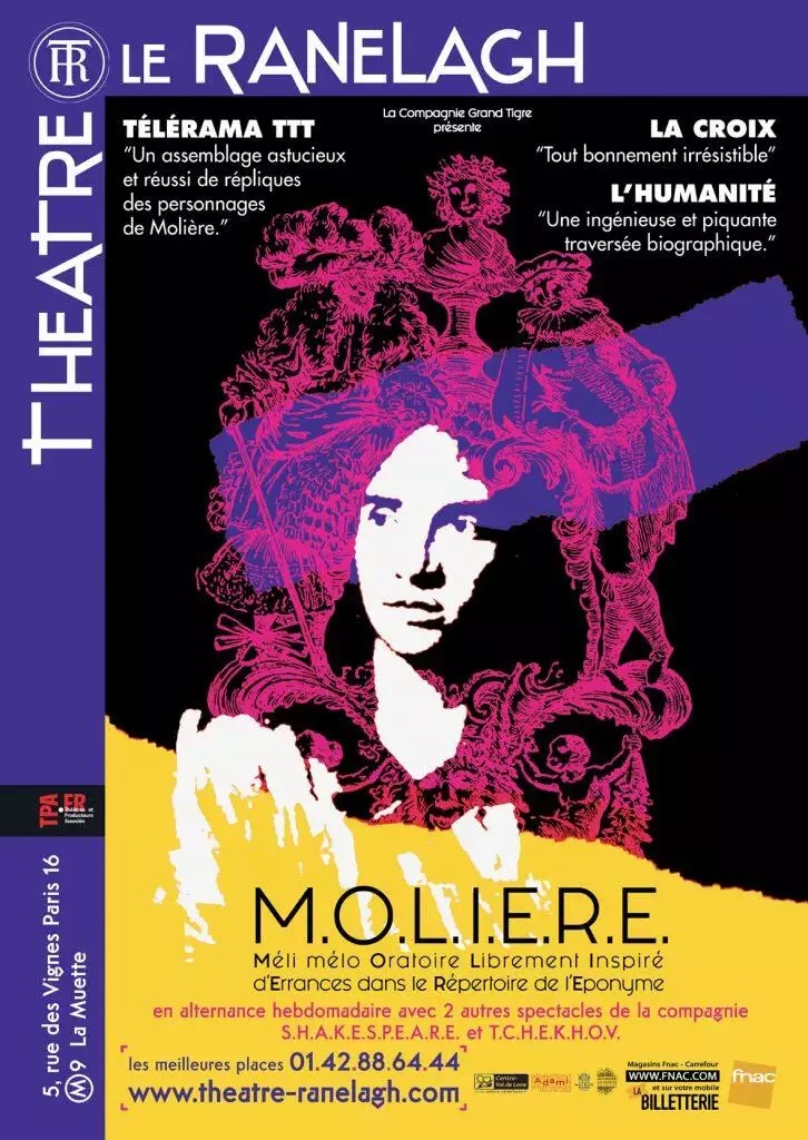 Notre avis (représentation du 17 décembre 2025) : Le projet TIGRE (Tryptique pour l’inspection générale du répertoire essentiel) porté par la Compagnie du Grand Tigre est un projet de création de trois spectacles qui prennent pour matière la vie et l’œuvre de trois auteurs majeurs du théâtre : Molière, Tchekhov et Shakespeare. Pour MOLIÈRE, les auteurs ont tricoté un formidable spectacle qui nous entraîne dans la vie très mouvementée de Jean-Baptiste Poquelin.