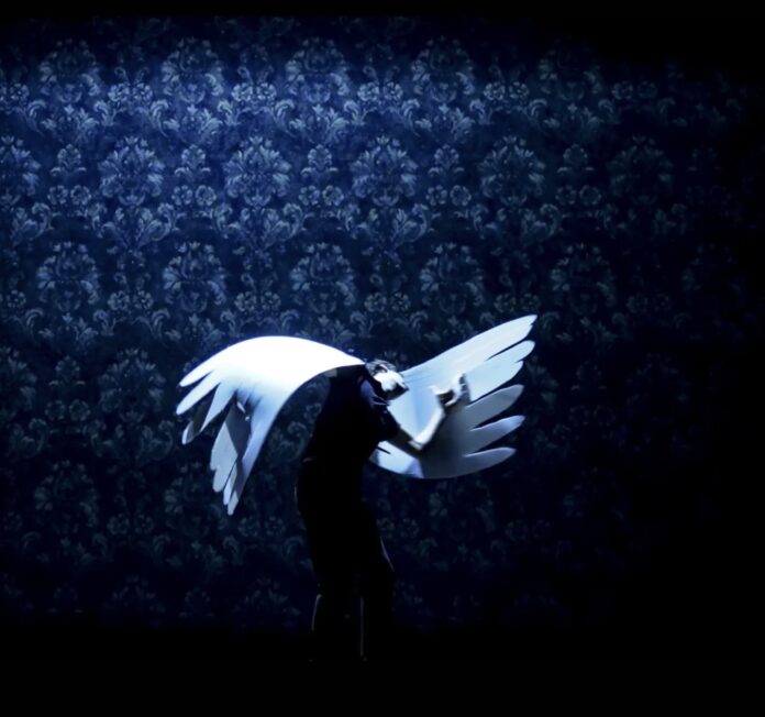 Notre avis (représentation du 8 novembre 2025) : Ce spectacle en appelle à la magie, autant celle organisée sur le plateau que celle provoquée dans l’imagination du public. Si vous souhaitez un spectacle éclatant, ludique, drôle : passez votre chemin puisqu’ici la tonalité générale est plutôt sombre, voire inquiétante. Étienne Saglio invente une histoire où un masque de tête d’oiseau inquiétant tient une large place. Il en émerge puis s’en trouve affublé, au même titre que d’autres protagonistes, veut tantôt s’en défaire, tantôt l’accepte. Mais rien n’est reposant. Il est secondé par un géant filiforme aux yeux comme deux phares de bicyclette et évolue dans des décors un rien cauchemardesques, entre une pièce aux murs qui semblent s’agrandir, une grotte, un chemin sombre. Le travail sur la lumière est remarquable, il parvient à créer une atmosphère qui enferme le spectateur, l’emprisonne. Et c’est peut-être là que le bât blesse. L’auteur semble coincé dans une sorte de névrose qu’il veut nous faire partager : il faut donc être en condition pour la recevoir. N’en reste pas moins un travail très fin, élégant.